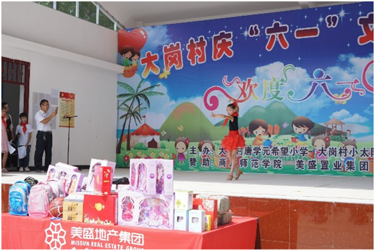 綠樹陰濃夏日長(zhǎng),在天朗氣清的季節(jié)里,美盛地產(chǎn)集團(tuán)高管及員工代表于6月1日再次來(lái)到商丘睢縣蓼堤鎮(zhèn)大崗村“唐學(xué)元希望小學(xué)”,參加了學(xué)校組織的六一兒童節(jié)文藝聯(lián)歡會(huì)并為孩子帶去了節(jié)日禮物。