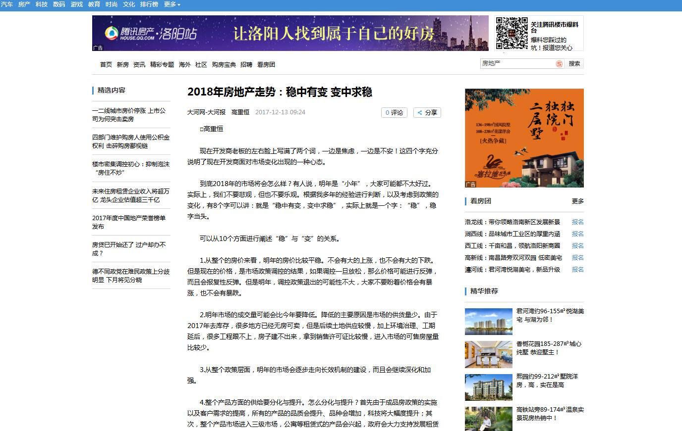 到底2018年的市場將會怎么樣?有人說,明年是“小年”,大家可能都不太好過。實際上,我們不要悲觀,但也不要樂觀。根據我多年的經驗進行判斷,以及考慮到政策的變化,有8個字可以講:就是“穩中有變,變中求穩”,實際上就是一個字:“穩”,穩字當頭。