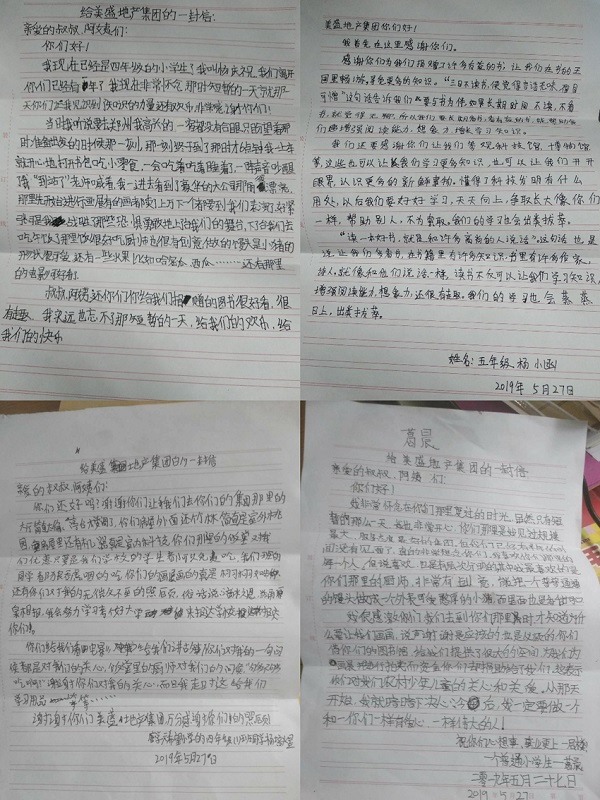當天,孩子們還以書信形式回憶起此前訪問美盛地產集團時的情景——