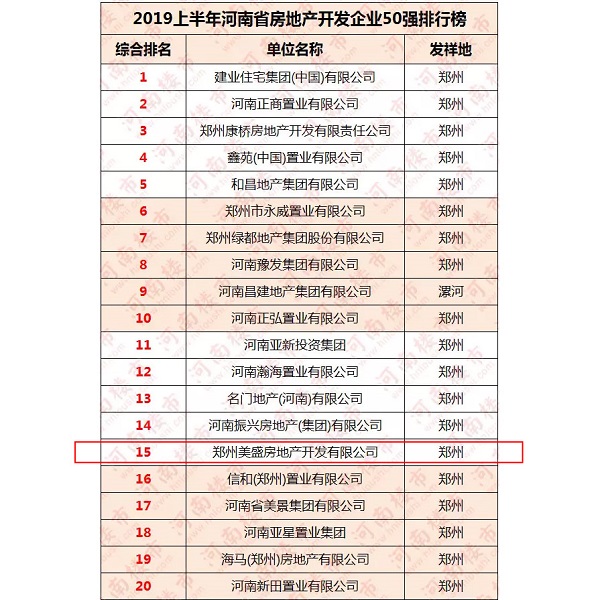 自2004年起,美盛先后進駐河南鄭州、漯河、許昌、南陽等省內主要城市,總開發建設和擬開發面積逾千萬平方米,產品涵蓋寫字樓、商業綜合體、商品住宅和高品質公寓等多種類型。與此同時,依托房地產開發版塊,美盛也不斷的完善服務產業鏈條。美盛物業不斷的結合地域文化、人居特點,吸納并提升物業管理經驗。 正是這樣的務實精神,實干精神,在2019年8月26日,河南樓市網數據研究中心發布了2019上半年河南省房地產開發企業50強排行榜,美盛逆勢突圍,首次入圍即強勢進入TOP15。