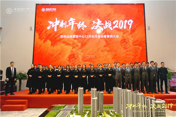 沖刺年終,決戰2019!12月9日上午,美盛地產集團營銷品牌管理中心12月份月度會暨誓師大會,在美盛·教育港灣營銷中心隆重啟幕。
