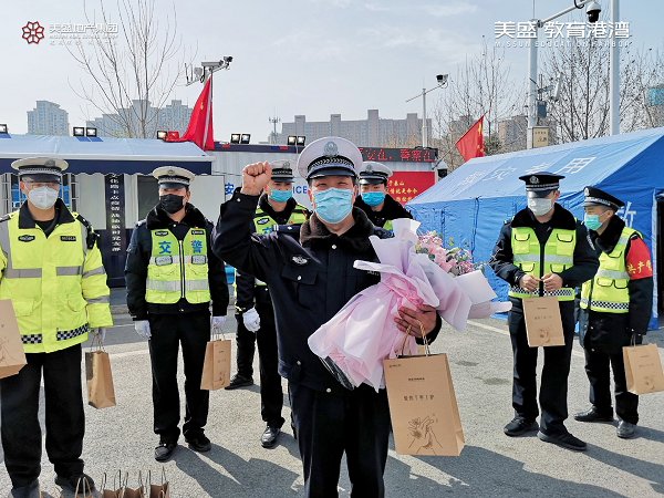 3月12日,美盛教育港灣心懷感恩,走上抗疫一線,慰問那些身處抗疫一線的交警同志們,為他們送上防疫禮包,為全民抗疫貢獻自己一份微薄之力。
