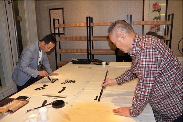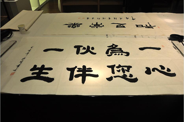 有幸請到中國當(dāng)代著名毛體書法家、國禮藝術(shù)家楊新平先生以及河南省書法協(xié)會會員、河南硬筆書法家協(xié)會會員、許昌市東城區(qū)弘圣美術(shù)館名譽館長劉振侖先生為我們現(xiàn)場題字,兩位大書法家現(xiàn)場揮毫潑墨,為儀式增添濃重的文化氣息。