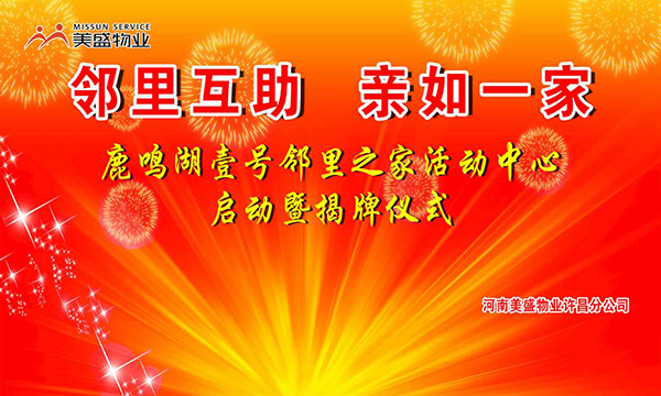 2019年4月21日上午9點,伴隨著潤雨細無聲的點綴,主持人宣布美盛物業(yè)許昌分公司鹿鳴湖壹號小區(qū)“鄰里之家”活動中心啟用暨揭牌儀式正式開始。