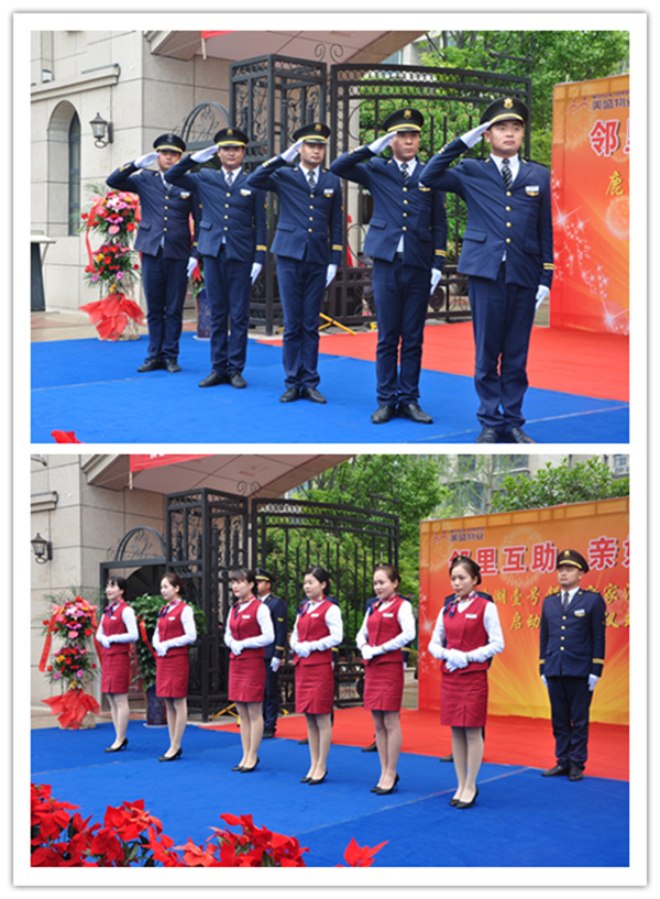 開幕儀式,我們物業(yè)秩序與客服團隊首先亮相,進行精彩日常高端服務(wù)的風(fēng)采展示。禮賓團隊標(biāo)準(zhǔn)的敬禮、客服團隊優(yōu)雅嫻熟的服務(wù)禮儀及秩序團隊鏗鏘有力的盾牌表演,贏得到場嘉賓和業(yè)主的陣陣掌聲。