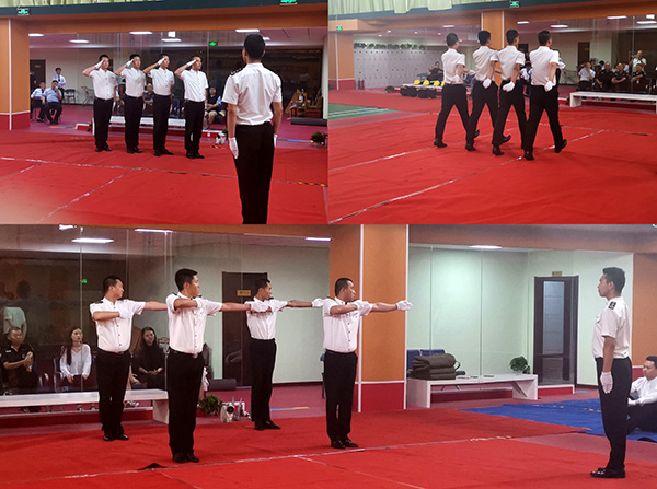 嚴謹負責的評委團,通過秩序安全管理+企業文化考題筆試、軍事隊列展示、消防實操演習、宿舍內務實操、才藝展示,五大關卡,層層篩選,考驗每一位參賽者的現場實操演練、步驟清晰、凸顯服務技能能力,進行現場評分。我們的參賽人員也各個精神飽滿、神采奕奕,表現出自信滿滿、誰與爭鋒的比賽精神,全力為自我工作崗位能力比比高低。