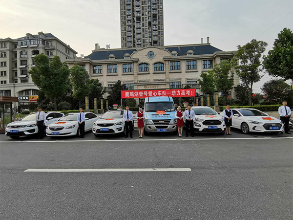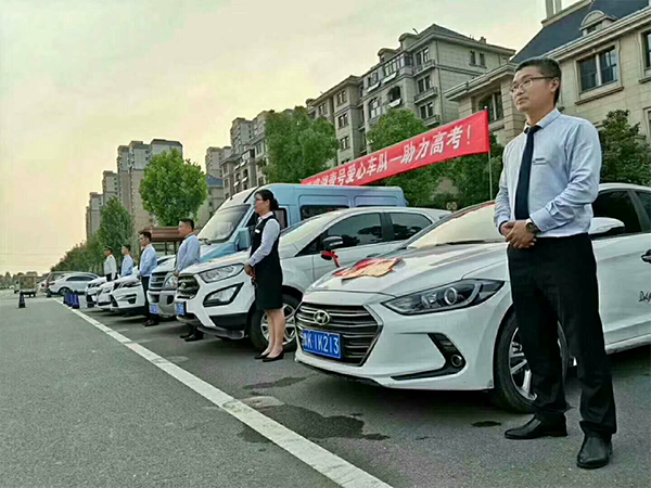 高考前一天服務(wù)中心組織員工愛心車隊,護(hù)送考生加油助威。
