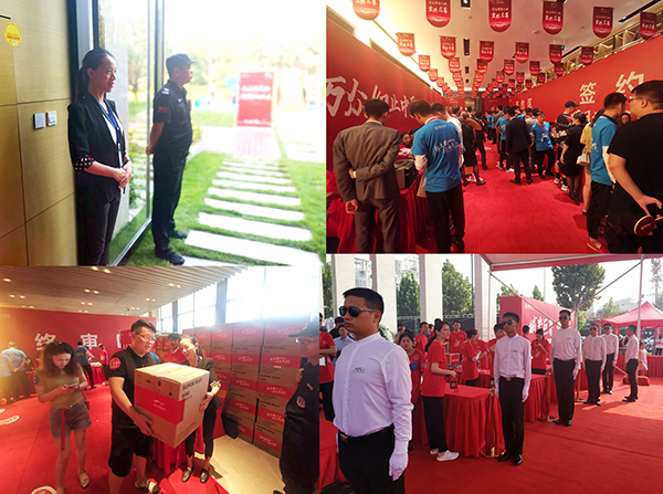 “您好!請(qǐng)問您是來參加選房活動(dòng)的嗎?”當(dāng)客戶車輛緩緩駛?cè)霑r(shí),首先會(huì)迎來入口禮賓崗的行禮致敬與親切問候。在引導(dǎo)車輛行駛方向的同時(shí),通過對(duì)講系統(tǒng)通報(bào)人數(shù)特征和車牌信息,為后續(xù)崗位的服務(wù)接續(xù)做好充足的準(zhǔn)備。停車場(chǎng)內(nèi)車場(chǎng)崗秩序隊(duì)員接到禮賓崗信息,由崗位小跑入停車場(chǎng),用標(biāo)準(zhǔn)姿勢(shì)引導(dǎo)車輛停放。
