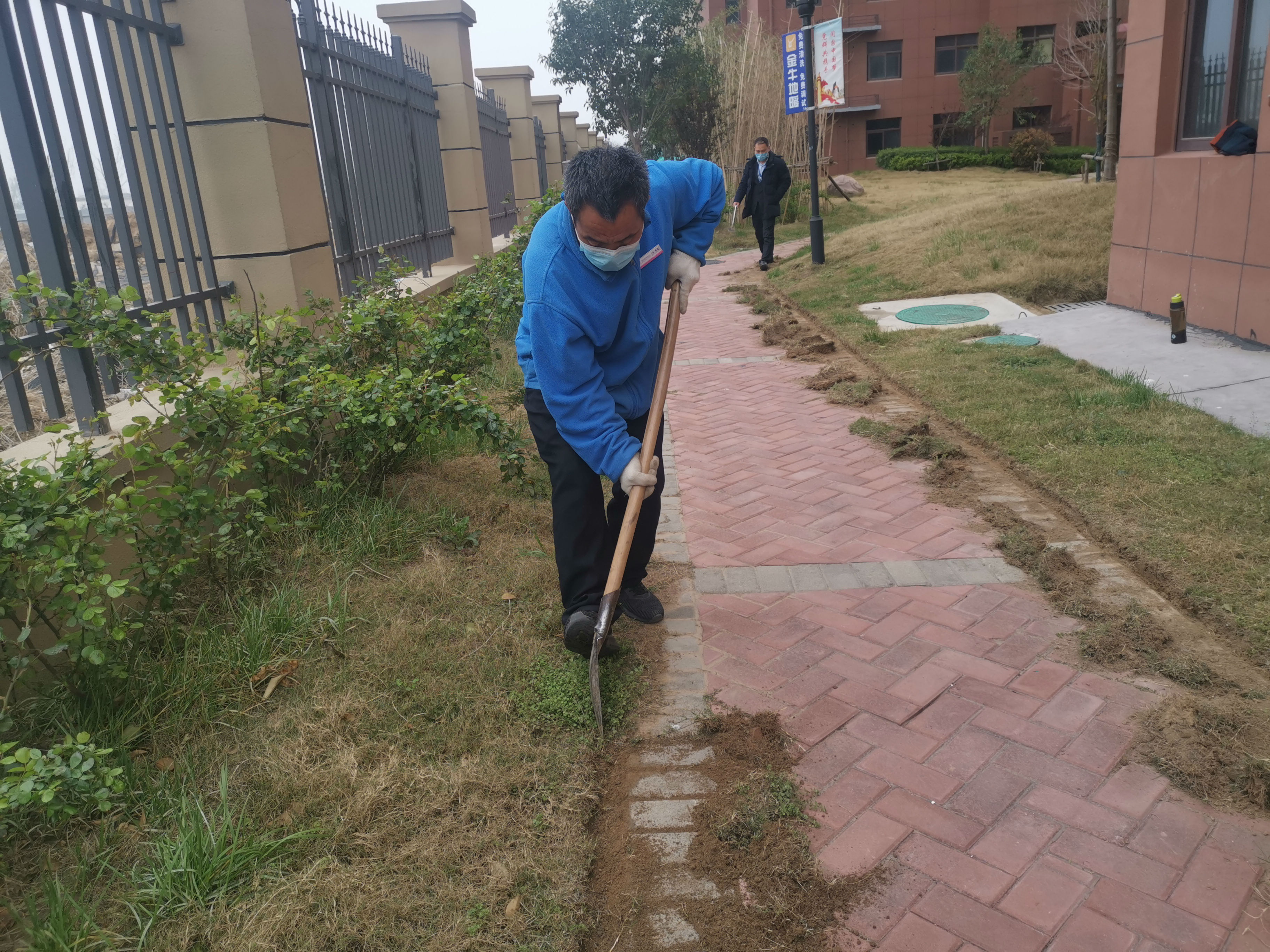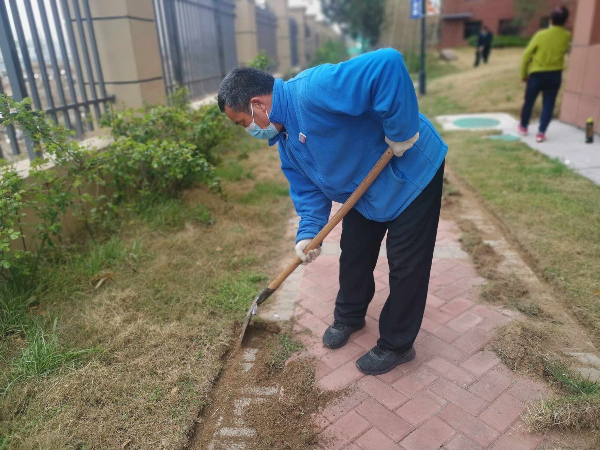 第一次在項(xiàng)目上見到他,他在低頭拿著鐵锨認(rèn)真的整理綠化帶的隔離溝,說話的時(shí)候,沒有停止手中的工作,只是抬頭靦腆的笑笑又繼續(xù)投入到工作中。春天萬物復(fù)蘇,草坪里的花草經(jīng)過一冬天的洗禮,開始瘋長(zhǎng),草根隨著地磚蔓延到道路,盤根錯(cuò)節(jié)的很難清理,花草就像做人也需要適時(shí)的梳理,才能長(zhǎng)得更好。于是王師傅想到一個(gè)辦法,利用每天工作之余專門挖綠化隔離溝。跟他交談的時(shí)候,問他默默的做了多久,他說差不多一個(gè)月,每天挖三四個(gè)小時(shí),還得一周的時(shí)間才能清理干凈。