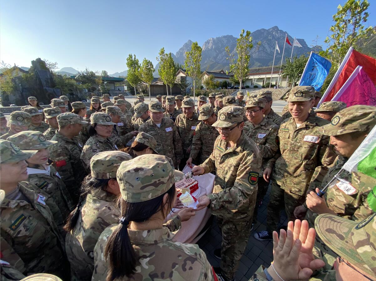 進行隊形隊列等軍事科目訓(xùn)練的同時還開展了摸石過河、百發(fā)百中、挑戰(zhàn)150等訓(xùn)練項目。雖然在150秒內(nèi)有隊伍沒有完成全部項目,但是大家都沒有放棄,一個項目一個項目地攻克,直至完成所有項目。