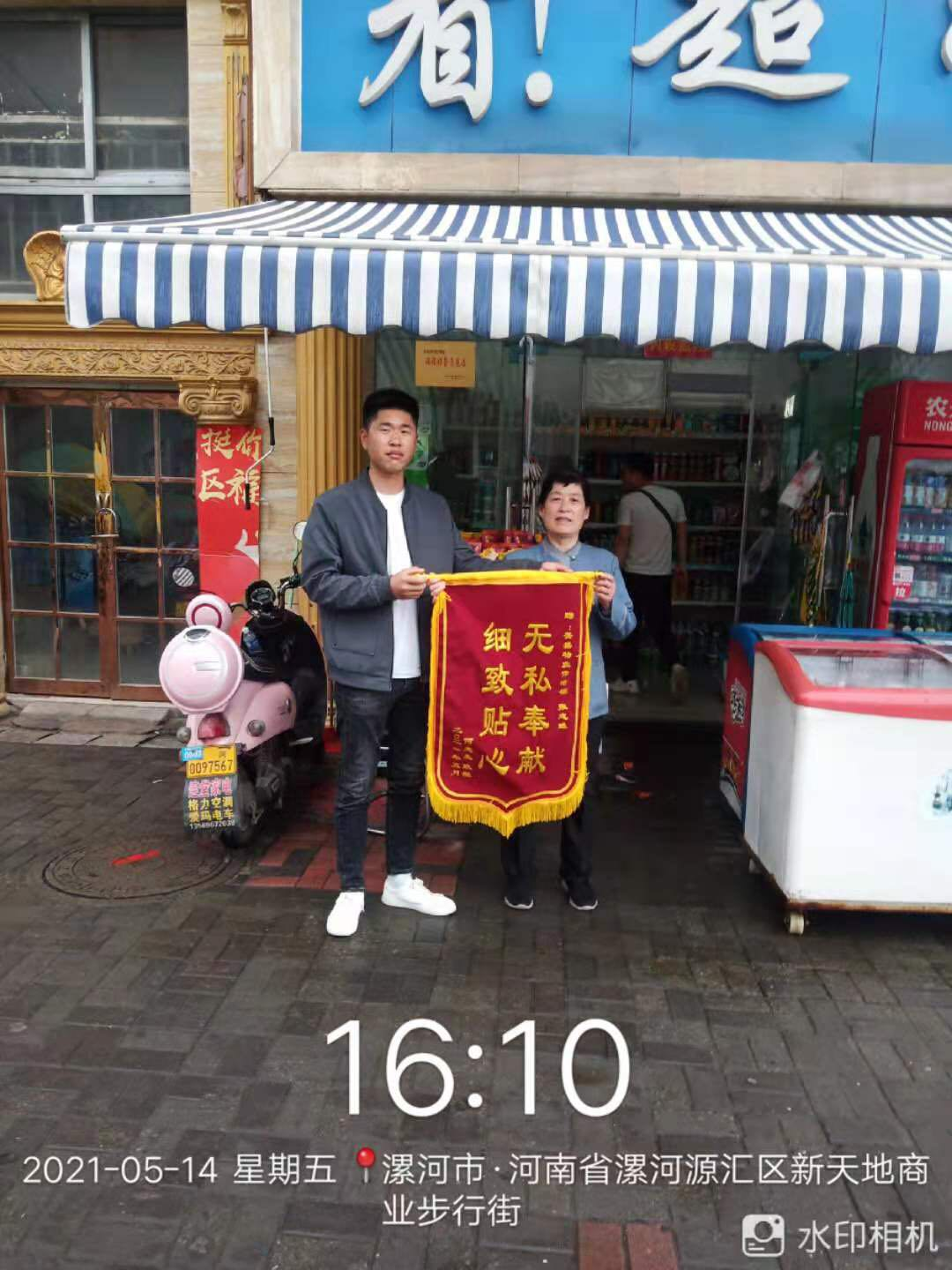最后,母親領著男孩欣慰又開心的離開,為表達謝意,孩子的父親第二天特地送來一面寫有“細致貼心,無私奉獻”的錦旗。
