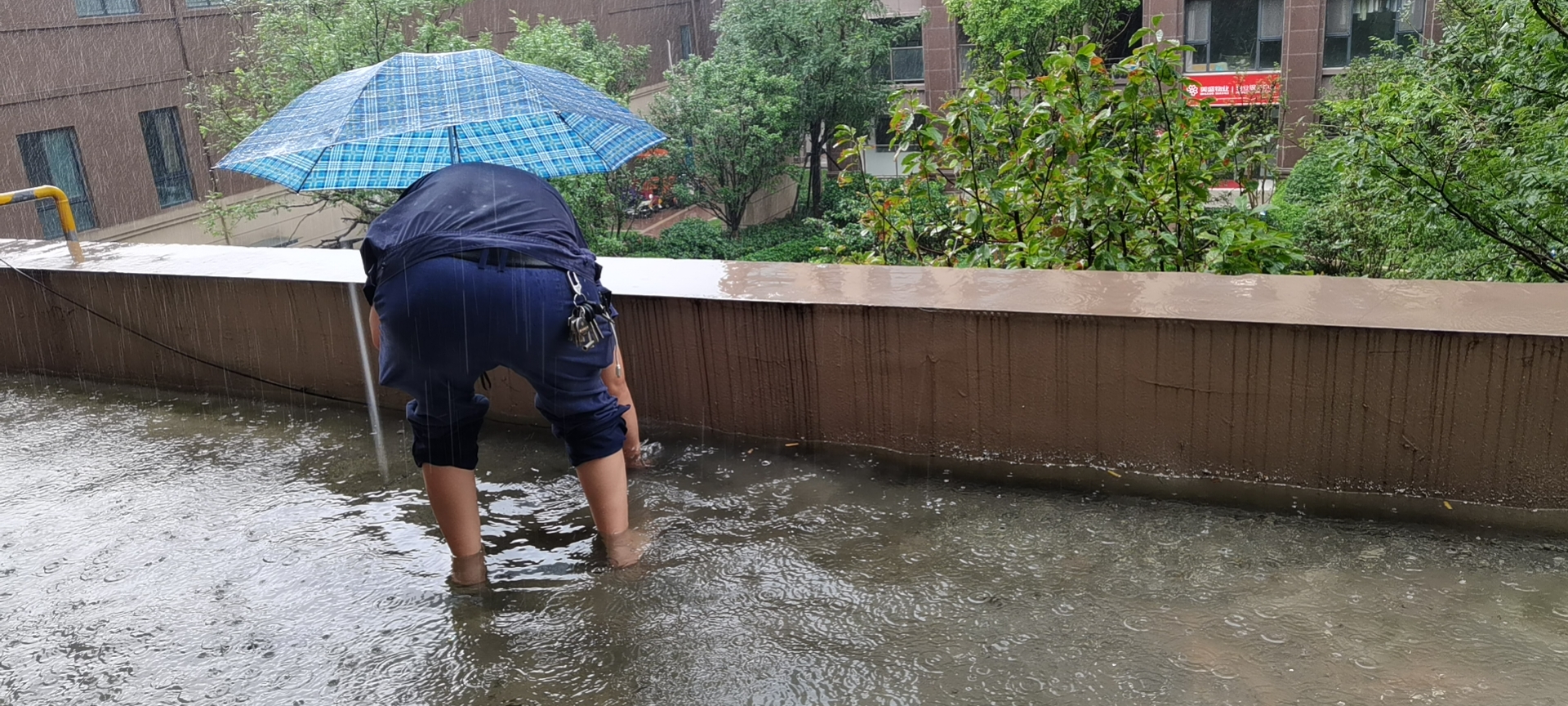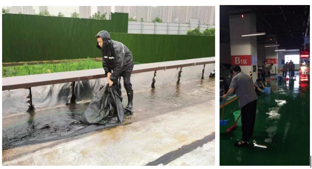 日常進入雨季,前期項目會提前做好準備工作,提前檢查疏通地面和屋面排水溝,清理化糞池和污水井、檢查排水主管與市政管網(wǎng)接口,保證暢通;檢查排污水泵,保證重要位置(發(fā)電機房、水泵房、配電房)等位置的污水泵能自主運行;檢查外墻立面,通知住戶,整理陽臺、屋頂花園、清理高空擱置物、雨棚。項目重點位置和設施設備,針對設備機房及低于小區(qū)水平面標高的設施設備進行重點監(jiān)控(地下室、電梯井);辦公電腦和監(jiān)控主機、道閘設備等公共用電設備。